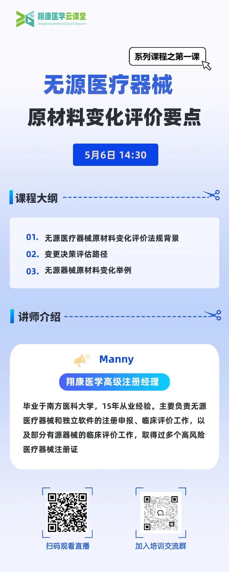 【云课堂直播】5月6日《无源医疗器械原材料变化评价要点》